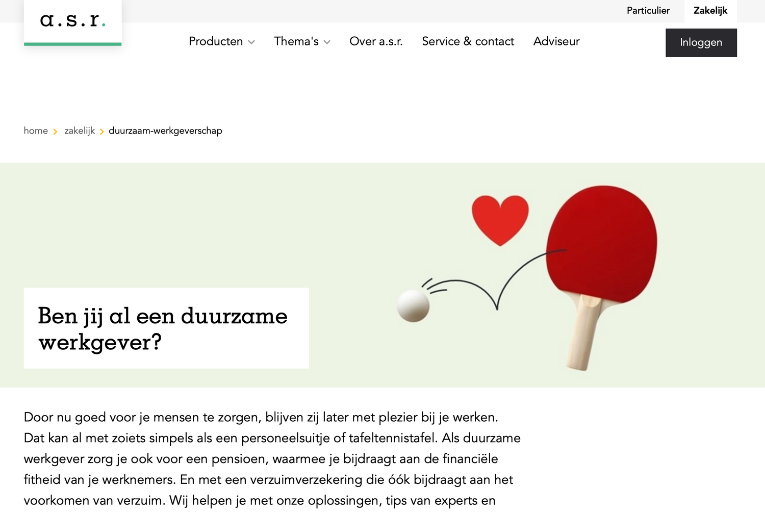 Duurzame inzetbaarheid voor werkgevers, werknemers en zelfstandigen. Daar streeft a.s.r. naar als het gaat om verzuim-verzekeringen. Met de slimme merkstrategie van Usense kan a.s.r. die autoriteitspositie inmiddels claimen.